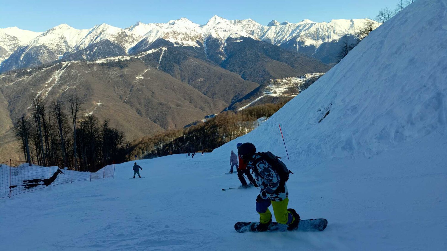 Для новичков идеально подходит «Лаура» (часть «Газпрома») — там широкие, пологие трассы и хорошая инфраструктура для обучения.