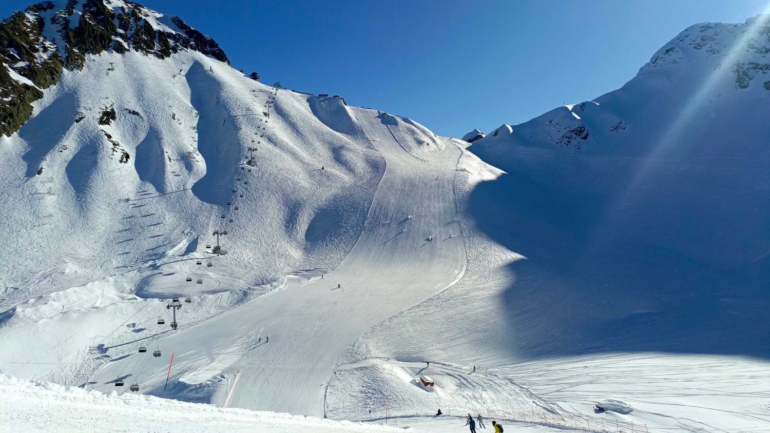 Курорт активно развивается: ведутся работы по обустройству новых трасс в Цирке-3, что говорит о планах по расширению трассовой сети. Инфраструктура здесь менее масштабна, чем на других курортах: 13 канатных дорог, включая один траволатор и три бугельных подъемника. Однако есть свои сильные стороны: вечернее катание доступно на 5 км трасс (2В, 8Е, 8А), что является большим преимуществом. Весь курорт находится под единым управлением, что обеспечивает координацию и целостность сервиса.